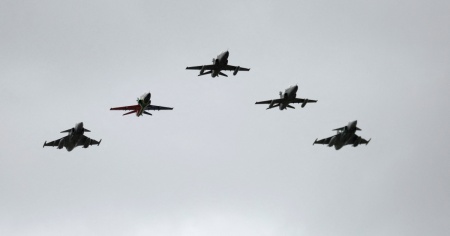 I jet hanno attraversato la linea mediana in cinque gruppi per un pattugliamento.