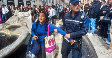 ROMA - Ancora un blitz contro le opere d’arte del gruppo “Ultima Generazione”. Tre attivisti hanno riversato nella Barcaccia di piazza di Spagna, la celebre fontana di Roma, un liquido nero in segno di protesta. Centinaia i turisti che si sono fermati a filmare incuriositi. Un attivista del gruppo ha dispiegato in seguito uno striscione con la scritta “No Fossil”.