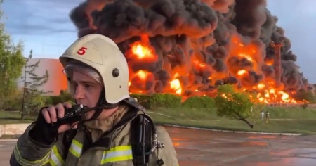 Secondo Razvozhayev, le fiamme si sono estese a un'area di 1.000 metri quadrati e sui social sono iniziate a circolare foto e video di quello che sembra essere l'intero deposito petrolifero e di un'enorme nuvola nera di fumo sopra la città.