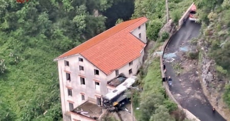 SALERNO - Tragedia della strada nella tarda mattinata di oggi. Un autobus è uscito di strada precipitando nel vuoto per circa 20 metri, per poi schiantarsi contro un'abitazione disabitata in località Ravello, in provincia di Salerno.