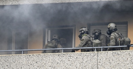 L'esplosione potrebbe essere stata innescata dalla presenza sul pavimento di benzina o di materiale infiammabile, ma non è chiaro se la detonazione sia stata provocata dall'apertura della porta o innescata dall'uomo, neutralizzato successivamente da agenti del commando speciale.