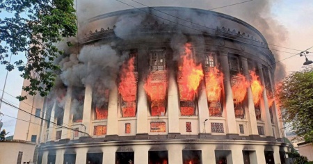 MANILA - Lo storico ufficio postale centrale di Manila è stato devastato da un incendio scoppiato poco prima della mezzanotte di domenica. Le fiamme hanno completamente avvolto l'edificio neoclassico e distruggendo tutto quanto si trovava al suo interno, dal seminterrato fino al terzo piano.