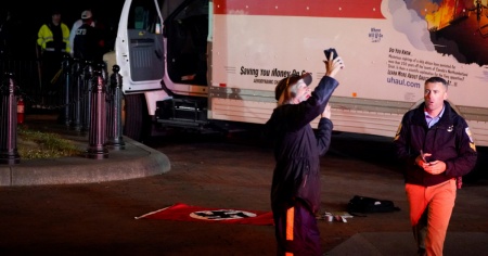 L'uomo, una volta sceso dal veicolo, ha pronunciato delle frasi minacciose nei confronti del simbolo del potere statunitense ed è stato prontamente arrestato. Il camion, di quelli che si possono noleggiare per traslochi o altro genere di trasporti, era vuoto - ma al suo interno è stata trovata una bandiera nazista, estratta poi dagli agenti e sequestrata come prova a carico dell'uomo.
