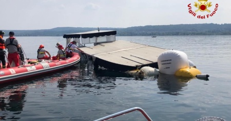 SESTO CALENDE - È stata riportata temporaneamente a galla l'imbarcazione turistica - la "love Lake", chiamata anche "Good...uria" e lunga 15 metri - naufragata domenica sera a Lisanza (Varese) con 23 passeggeri a bordo sui 15 previsti dalla massima capienza.