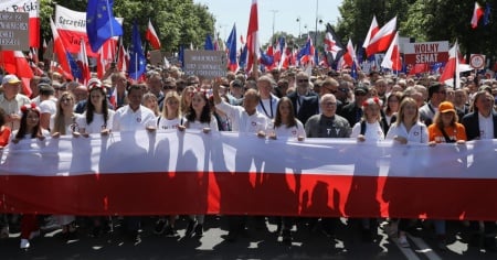 All'inizio della marcia ha preso la parola il premio Nobel per la pace Lech Walesa, ex leader del sindacato Solidarnosc. «La prima cosa da fare per iniziare la strada verso la vittoria è fare i conti per sapere quanti siamo», ha detto Walesa con una maglietta con la scritta 'Konstytucja' (costituzione). La marcia ha riunito migliaia di cittadini polacchi, giunti da diverse località del paese. «Siamo qui perché la Polonia deve restare in Europa», dice uno di loro.