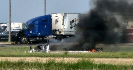 Secondo le prime ricostruzioni del quotidiano Winnipeg Free Press, l'incidente è stato causato da un camion che si è scontrato con un minivan usato per il trasporto di anziani e disabili.