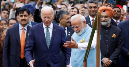 WASHINGTON - Joe Biden e la first lady Jill hanno accolto il premier Narendra Modi per la sua visita ufficiale alla Casa Bianca, tra l'entusiasmo di migliaia di indiani americani nel South Lawns che hanno cantato slogan a favore dei due leader con le bandiere dei due Paesi.