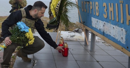 Lo scrive lo stesso leader su Telegram: «500 giorni di guerra totale. L'isola dei serpenti. L'isola libera della libera Ucraina. Sono grato a tutti coloro che hanno combattuto qui contro gli occupanti. Abbiamo commemorato gli eroi che hanno dato la vita in questa battaglia, una delle più importanti della guerra. Gloria e onore a tutti coloro che combattono per la sicurezza Mar Nero». Il video mostra il presidente arrivato in barca, accompagnato dal capo dell'ufficio presidenziale Andriy Yermak.