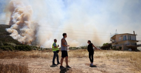 «È un incendio difficile, con venti molto forti fino 50-60 chilometri orari», ha dichiarato Yannis Artopios, portavoce dei vigili del fuoco. La Grecia sta vivendo un'intensa ondata di caldo da giovedì, con picchi di oltre 44 gradi nel centro del Paese.