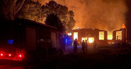 Russia's guided air bomb against a blood transfusion center in Ukraine. This evening, Kupiansk community in Kharkiv region. Dead and wounded are reported. My condolences! Our rescuers are extinguishing the fire.
