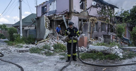 «Una famiglia intera è morta», ha riferito il ministro dell'Interno Igor Klymenko su Telegram, pubblicando immagini che mostrano le conseguenze dell'attacco, con una foto che ritrae una colonna di fumo nero che si alza sopra una casa: