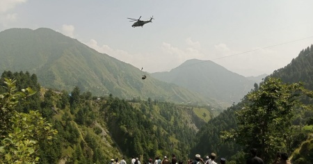 Per oltrepassare il fiume la seggiovia è l'unica soluzione per gli abitanti dei villaggi. Il gruppo si stava recando dall'altra parte della valle per raggiungere la scuola di Battagram.