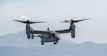 L'Osprey V-22 è un convertiplano, un ibrido fra un aereo e un elicottero, con due rotori orizzontali alle estremità delle ali per il decollo e l'atterraggio verticali, che si riposizionano in avanti come eliche per il volo.