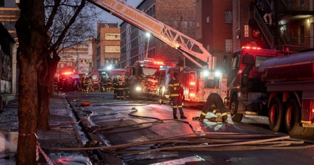 I feriti, molti dei quali hanno inalato il fumo dell'incendio, sono ricoverati nei vari ospedali della zona. Una colonna di fumo si è sollevata sopra la città. In questo momento il rogo è in gran parte spento, anche se il fumo continua a fuoruscire dalle finestre. Le cause dell'incendio non sono al momento note.