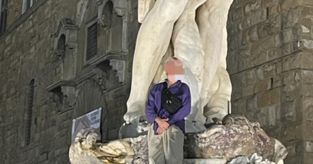 FIRENZE - Ancora scempio del patrimonio artistico in Italia: un turista tedesco si è arrampicato sulla statua del Nettuno a Firenze, danneggiandolo.