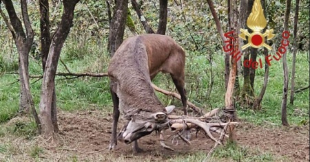 COMO - Un agente della polizia provinciale di Como è stato ferito questo pomeriggio nel tentativo di liberare un cervo, rimasto incastrato in alcuni cavi di acciaio. È accaduto a Corniga, frazione sui monti di Colonno, dove è stato chiesto l'intervento degli agenti e dei vigili del fuoco per liberare l'animale, un cervo adulto.