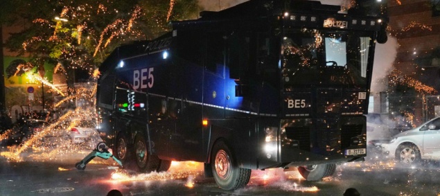 I manifestanti (pro Palestina) attaccano la polizia con i fuochi d'artificio