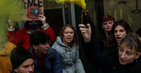 Anche questa protesta, come quella di due giorni fa in cui era avvenuto il fermo di Greta, è stata organizzata dall'ong ecologista Fossil Free London: la forma di protesta in entrambi i casi si è concentrata sul tentativo di bloccare le porte per accedere agli edifici presi di mira dagli ecologisti.