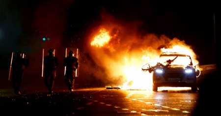 Cartelli "Irish Lives Matter" e bandiere irlandesi sono stati portati in piazza da centinaia di manifestanti durante gli scontri scoppiati in questo quartiere dove sono presenti numerosi immigrati. Agenti della sicurezza hanno usato scudi antisommossa e manganelli per disperdere la folla di persone che si era radunata per le strade. Oltre all'auto della polizia data alle fiamme, diversi altri veicoli della polizia sono stati danneggiati.