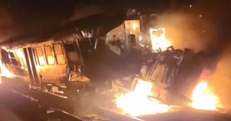 Entrambi i mezzi hanno preso fuoco dopo l'impatto. Al momento, non si segnalano feriti tra i passeggeri del treno