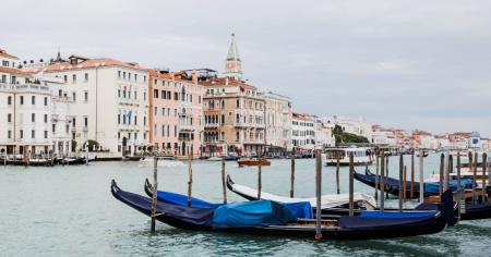 Quattro turisti orientali fanno rovesciare una gondola a Venezia, per fare delle foto: tutti in acqua