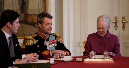 La sovrana 83enne ha firmato la sua dichiarazione di abdicazione al Consiglio di Stato presso il Palazzo di Christiansborg, con il figlio 55enne seduto alla sua destra.
