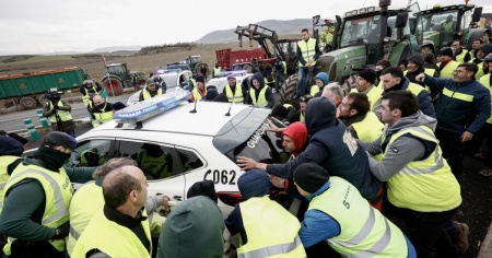 Due persone sono state arrestate in provincia di Burgos, durante un tentativo di occupare la carreggiata dell'autostrada A-1, mentre altre due sono finite in manette in un altro tentativo di blocco in provincia di Almería, mentre a Zafra, in Estremadura, è stato ferito l'agente della Guardia Civil, colpito da una pietra.