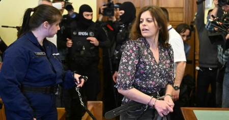 BUDAPEST - Manette ai polsi, ceppi e catene alle caviglie e una catena tirata da un agente come un guinzaglio esattamente come accaduto nell'udienza del 29 gennaio. È entrata così questa mattina in aula Ilaria Salis, la 39enne docente milanese in carcere a Budapest da 13 mesi con l'accusa di aver aggredito tre militanti di estrema destra.