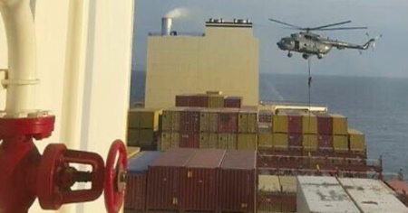 Dalle immagini - visionate da Associated Press - si vedono gli assalitori calarsi sulla nave da un elicottero. Sulla nave sequestrata dai Pasdaran iraniani nello Stretto di Hormuz ci sono 25 membri di equipaggio. Lo rende noto la società di spedizioni marittime Msc.
