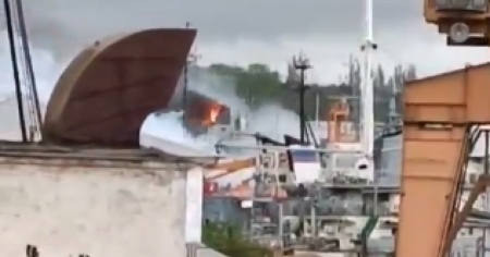 Le immagini mostrano sullo sfondo il fumo proveniente da una nave e un testimone oculare afferma che la nave è stata colpita da un missile prima di prendere fuoco. Il capo dell'amministrazione filorussa della Crimea annessa, Mikhail Razvozhaev, aveva affermato questa mattina che un «attacco» missilistico contro una delle navi russe a Sebastopoli era stato respinto.