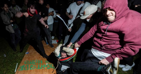 Pugni e bastonate tra manifestanti in un campus di Los Angeles