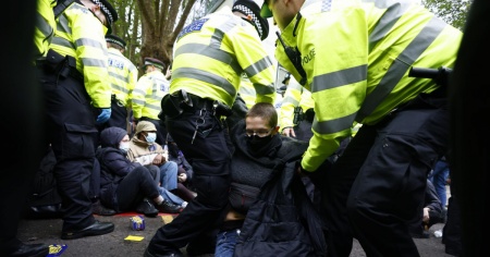 Alcuni attivisti sono stati trascinati via con la forza a Londra mentre cercavano di ostacolare il trasferimento dei migranti in Ruanda