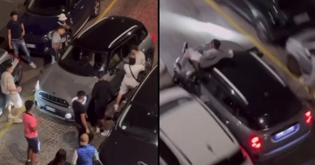 Sono circa una decina i giovani che circondano l'auto prendendola a pugni. A un certo punto il 31enne innesta la marcia e investe uno di loro. Poi colpisce un'auto in sosta, facendo esplodere uno pneumatico. La stessa scena si ripete ancora e ancora. Altri ragazzi vengono travolti dal veicolo e trascinati per alcuni metri.