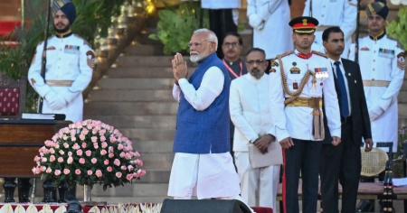 NEW DEHLI - Il primo ministro indiano Narendra Modi ha giurato per il suo terzo mandato consecutivo nella cerimonia in corso a New Delhi, nel palazzo presidenziale Rashtrapati Bhavan, officiata dalla presidente indiana Droupadi Murnu.Oltre al leader ...