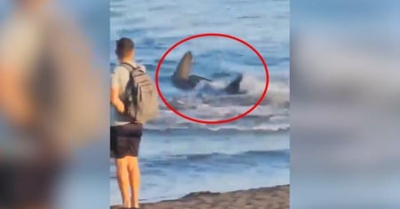 L'avvistamento è avvenuto pochi giorni fa, con la spiaggia affollata di turisti e residenti mentre si godevano il sole e il mare. Usciti a gran velocità dall'acqua, i villeggianti sono rimasti sulla spiaggia, affascinati e allo stesso tempo spaventati, osservando l'imponente animale.