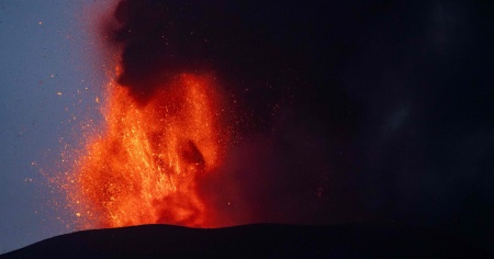 CATANIA - Nuovo parossismo sull'Etna dove nella notte il cratere Voragine ha fatto registrare un aumento dell'attività stromboliana che era ripresa nel tardo pomeriggio e che si è intensificata fino a trasformarsi in fontana di lava ed emettendo una nube di cenere alta circa 5 chilometri che si disperde direzione Est-Sud-Est.