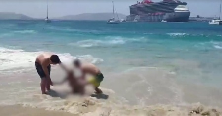 Onda anomala sulla spiaggia di Mykonos, feriti due bagnanti