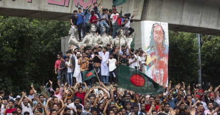 Il capo dell'esercito, generale Waker-Uz-Zaman, ha annunciato, in un discorso alla nazione diffuso dalla tv di Stato che formerà un governo ad interim a seguito delle dimissioni della premier, che ha intanto lasciato la capitale Dacca poco prima che i manifestanti prendessero d'assalto la sua residenza ufficiale. Secondo fonti vicine alla leader, Hasina sarebbe partita senza avere «il tempo di prepararsi», prima in un corteo di auto, poi è stata «evacuata in elicottero».