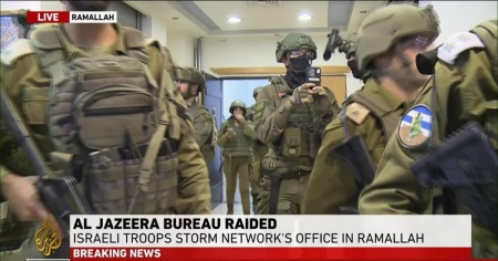 Esercito israeliano nella sede di Al Jazeera a Ramallah