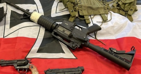 Sequestrate repliche di armi lunghe e pistole, mazze, tirapugni, coltelli, un machete, diverse bandiere e simboli riferibili al nazi-fascismo e al suprematismo.