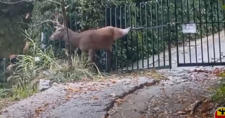 Si impiglia con la zampa nel cancello: flessibile per liberare il grosso cervo