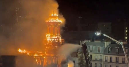 L'incendio, visibile in gran parte della capitale, è stato domato dopo tre ore di intervento dei pompieri, chiamati dopo le 3 del mattino e intervenuti con una sessantina di mezzi e 150 uomini. Le fiamme si sono sviluppate dal tetto ed hanno raggiunto il campanile che sovrasta l'edificio.