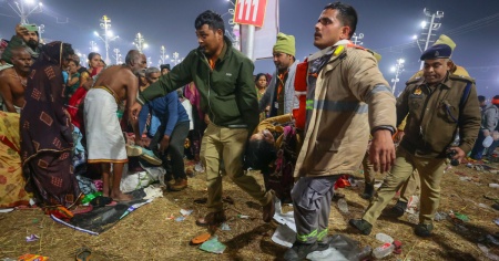 Secondo una prima ricostruzione le persone sarebbero state schiacciate in tre aree distinte alla confluenza dei fiumi sacri Gange, Yamuna e Saraswati. La folla si sarebbe riversata addosso a gruppi di persone che già si trovavano sul posto, sdraiate o sedute a terra.