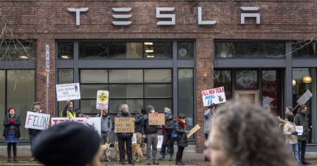 Proteste contro Musk, davanti alle concessionarie di Tesla