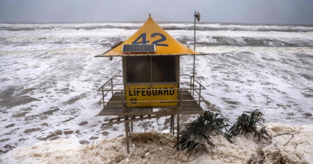 Forti raffiche di vento e forti piogge hanno abbattuto le linee elettriche e hanno fatto scattare allarmi di inondazione a causa dei fiumi in piena lungo un tratto di 400 chilometri di costa a cavallo tra il Queensland sud-orientale e il Nuovo Galles del Sud nord-orientale.