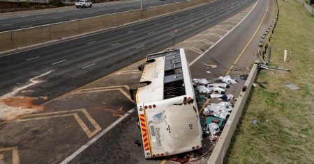 Secondo le fonti, l'autobus trasportava circa 50 passeggeri diretti al lavoro quando si è ribaltato su un'autostrada trafficata. «Non ci sono parole. È un disastro», ha detto Andile Mngwevu, funzionario dei trasporti del comune di Ekurhuleni. La causa dell'incidente non è stata ancora determinata.
