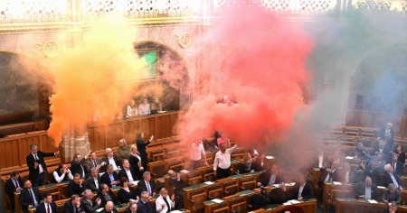 Durante la sessione parlamentare odierna sono stati lanciati dei fumogeni dai banchi di opposizione.