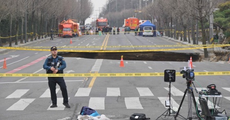 Una buca di almeno venti metri si è aperta sulla strada nel sud-est della capitale sudcoreana.