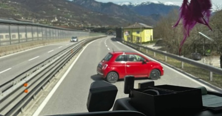 È accaduto giovedì in Trentino, una camionista mette di traverso il camion per non far passare la conducente distratta.
