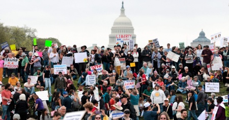 Sul Mall sono arrivati migliaia di attivisti, scaricati da decine di bus provenienti da vari Stati americani. Presenti anche vari parlamentari dem, che tengono mini comizi: Jamie Raskin, Maxwell Frost e Ilhan Omar. «Questa si sta configurando come la più grande protesta di un solo giorno negli ultimi anni della storia americana», ha detto Ezra Levin, fondatore di Indivisible, uno dei gruppi che ha pianificato l'evento.